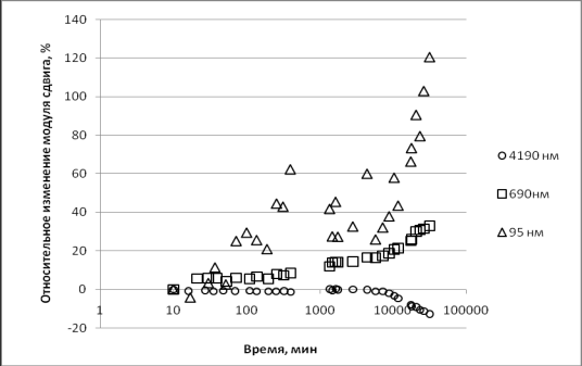 изменения модуля сдвига пленок в течение описанных испытаний. Наиболее