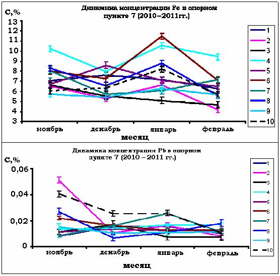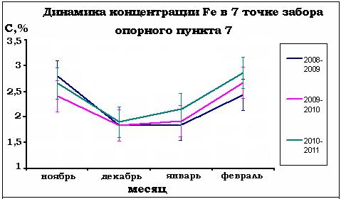 зимнего периода концентрации элементов понижаются в начале января, но уже к