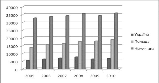 різниця в 2010 році склала: 2,8 рази порівняно з Польщею та 5,4 рази - з
