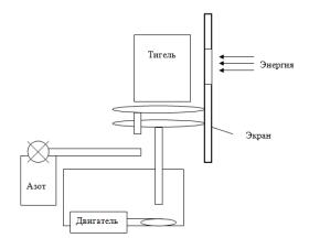 Рис. 1. Схема размещения тиглей на Рис. 2. Схема реактора.