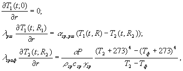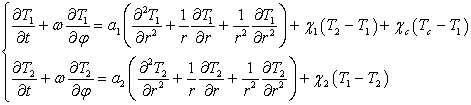 Уравнения, описывающие температурные поля внутри реактора и его стенки имеют