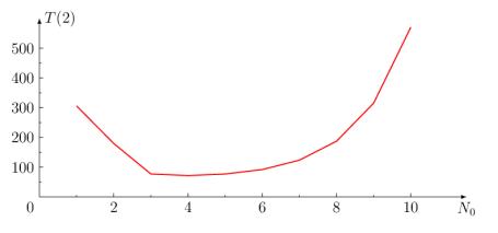 1. Зависимость среднего времени передачи кадра станцией А от степени начальной ширины окна для сети из двух станций.
