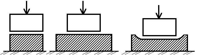 вдавливается жесткий квадратной формы в плане штамп. Размер каучука в плане