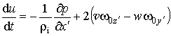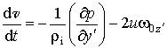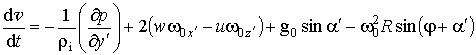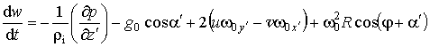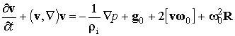 Рассмотрим движение сухого воздуха, описываемого уравнением движения идеальной жидкости с учетом вращения Земли в геоидальной системе координат: