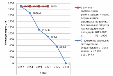 году из 1900 га существующих теплиц, в эксплуатации остается 1900 га, что по эквивалентной площади теплиц