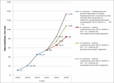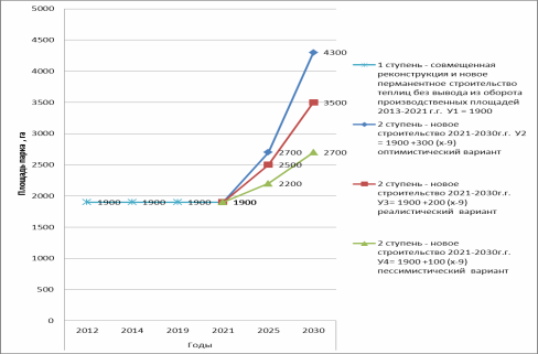 пессимистическом варианте в эксплуатацию вводится 2700 га перспективного парка теплиц.