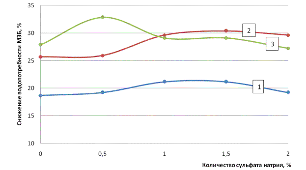 в количестве 0,25 и 0,5% наблюдается максимум снижения водопотребности при