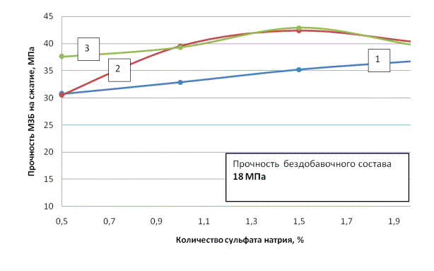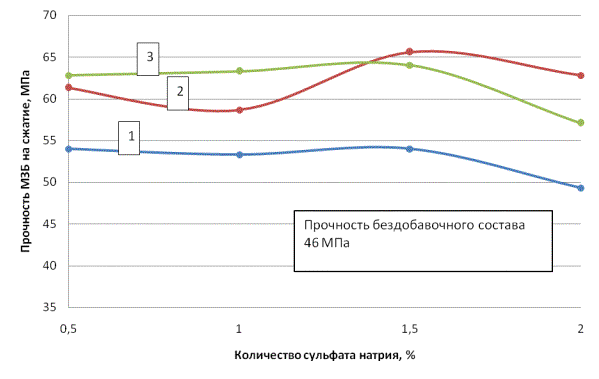 и 1,5% сульфата натрия. При этом прочность увеличилась на 44%.