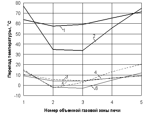 отопления характер изменения перепадов температуры по зонам печи в конце