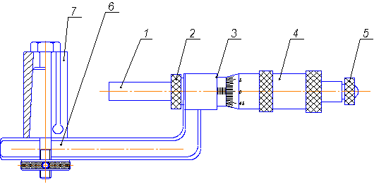 Рисунок 1 – Микрометр: 1 – подвижный щуп, 2 – регулировочная