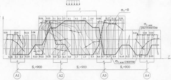 пределах одного вертикального сечения в наиболее нагруженных зонах.
