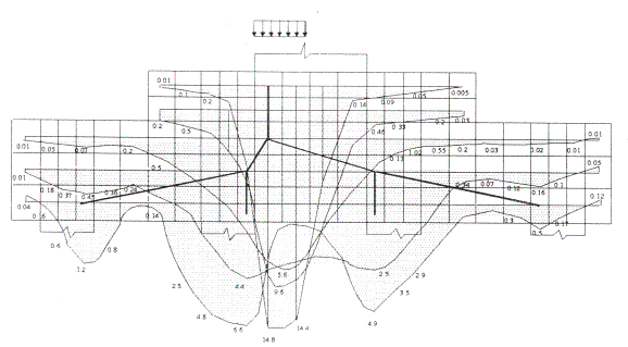 от максимальных значений у центральных свай до небольших усилий у крайних свай.
