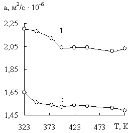 30 %) значениями коэффициента теплопроводности по сравнению со связу-ющим (рис. 1б). Температурные зависимости температуропроводности, которая является