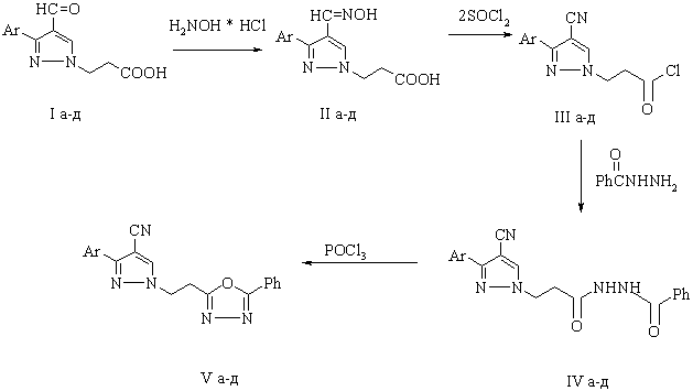 4-цианопиразолы с 1-(оксадиазолил) этильными фрагментами (Vа-д). Реализация этой задачи базируется на