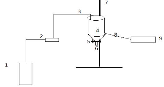 регулятор расхода воздуха 2, патрубок подачи воздуха 3, реактор 4, кран 5,