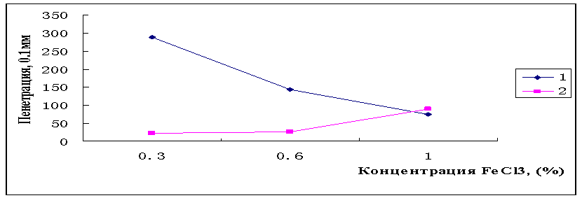 пенетрация постепенно снижается с повышением количества хлорида железа. При