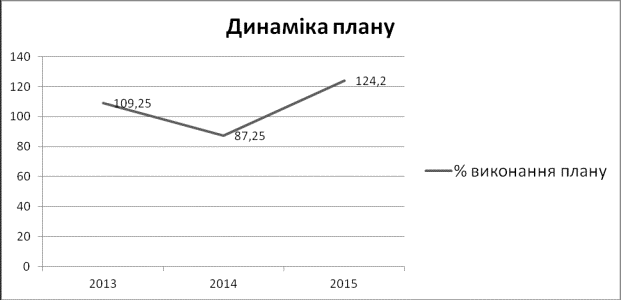 плану 2015 року від 2013 становить 14,95%. Отже, динаміка виконання плану є