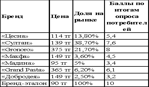 аналогичной продукцией на рынке макаронных изделий города Алматы.