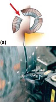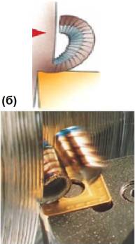 (а) – стружка ломается в процессе резки сама; (б) – стружка