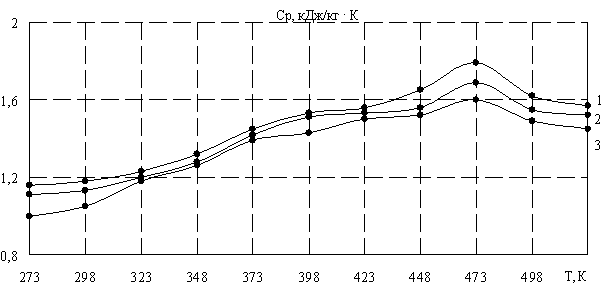 теплоемкости (Ср) (рис. 1) имели аналогичный характер: при области температур