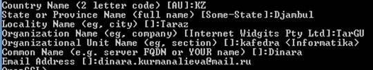 сертификатта берілуге тиісті ақпараттарды сұрайды. Бұл