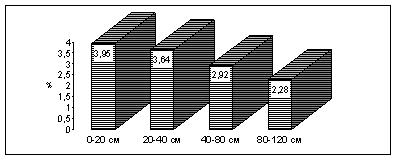 снижения его содержания вниз по профилю почвы представлен на рисунке 1.