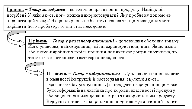 виникнення неходових товарів, розглянемо рівні товара (рис.1).
