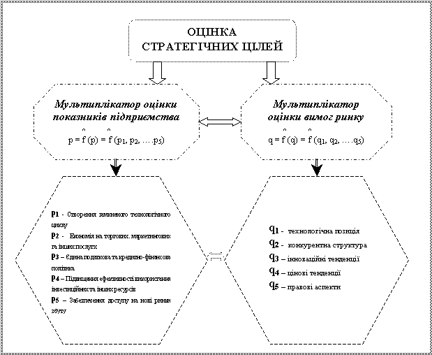 p = f (p) = f (p1, p2, ….p5) - мультиплікатор оцінки показників підприємства;