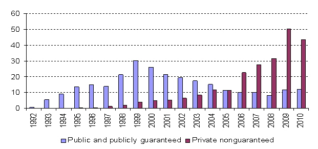 amount of public and publicly guaranteed external debt. Since the beginning of