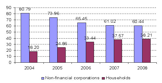 lending to the real sector in 2004–2008. The share of the consumer loans, on