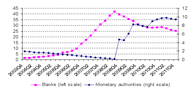 the crisis in 2008 to mid-2011 foreign liabilities of the National Bank