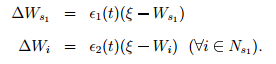 є1(t) – швидкість навчання переможця, а є2(t) –