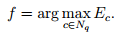 Визначити, серед сусідів q, вузол f з максимальною накопиченою помилкою
