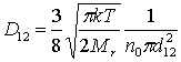 Коэффициент взаимной диффузии для наночастиц и молекул газа в этой модели равен