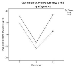 осознания» (до, во время, после) в отношении компоненты F2 представлен на рис.1. Левый рисунок из пары отражает изменения для контрольной группы, правый