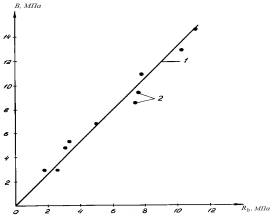 Рис. 1. Соотношение призменной и кубиковой прочности