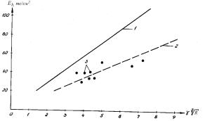 рисунка 2 видно, что опытные и вычисленные с учетом корректировки значения Еб имеют удовлетворительную сходимость.