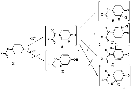 невыгодным, поэтому при гидрохлорировании N-ацил-1,4-бензохинониминов