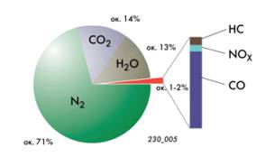 большую часть составляет азот, но рассмотрим все компоненты отработанных газов: