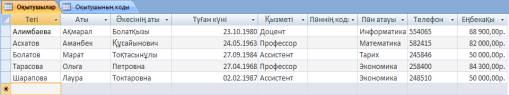 ! Кілттік өріс «Пәндер коды» болады. Бұл кесте де форма режимінде толтырылады.