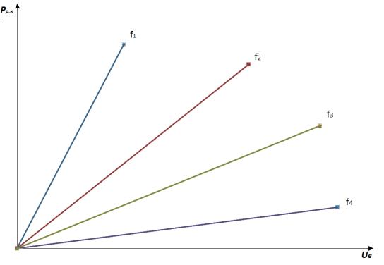 На рис.3 предполагается, что частота подаваемого напряжения f1 >f2>f3>f4. Рисунок показывает, что рост напряжения и частоты электрического сигнала приводят к повышению давления в камере разряда Pр.к..