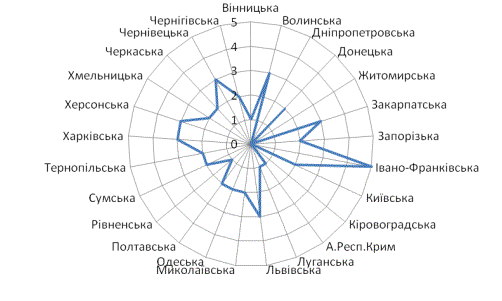 Житомирська та Кіровоградська), у більшості областей їх 2-3, а у