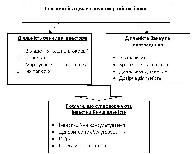 інвестиційну діяльність комерційних банків на ринку цінних паперів (рис. 1) [1].