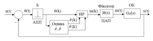 Розглянемо САК (рис.2) з цифровим НР і нестаціонарним ОК, «заморожена» ПФ якого