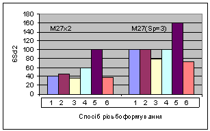 досліди показали, що різьби обкатані як за схемою «а», так і за схемою «б»