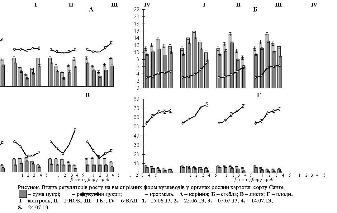 динаміку накопичення вуглеводів у рослин картоплі