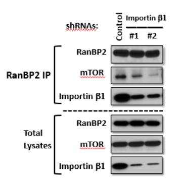 нокаутированного белка, но и киназы mTOR. Это говорит об активной взаимосвязи белков Importin β1 и mTOR именно в активной их форме, т.е. при образовании
