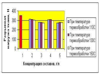 увеличением температуры выше 130°С разрывная нагрузка ткани уменьшается от 303