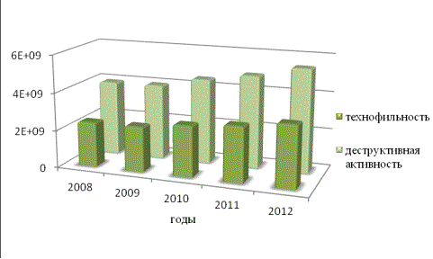 человечеством и его распространенностью в земной коре; 2) деструктивная