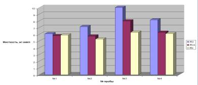 общей, кальциевой, магниевой, карбонатной и некарбонатной жесткости в разный